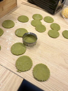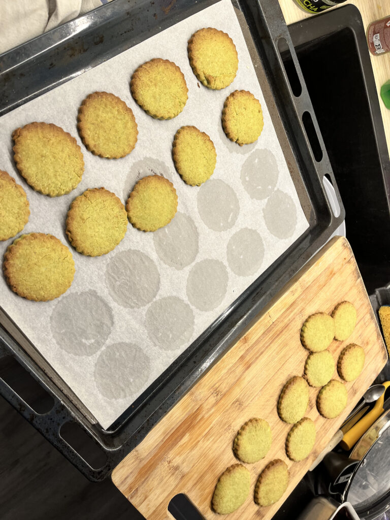 5. Faire cuire environ 10 min dans le four préchauffé à 180°C. Les biscuits ne doivent pas dorer pour qu’ils restent bien verts.